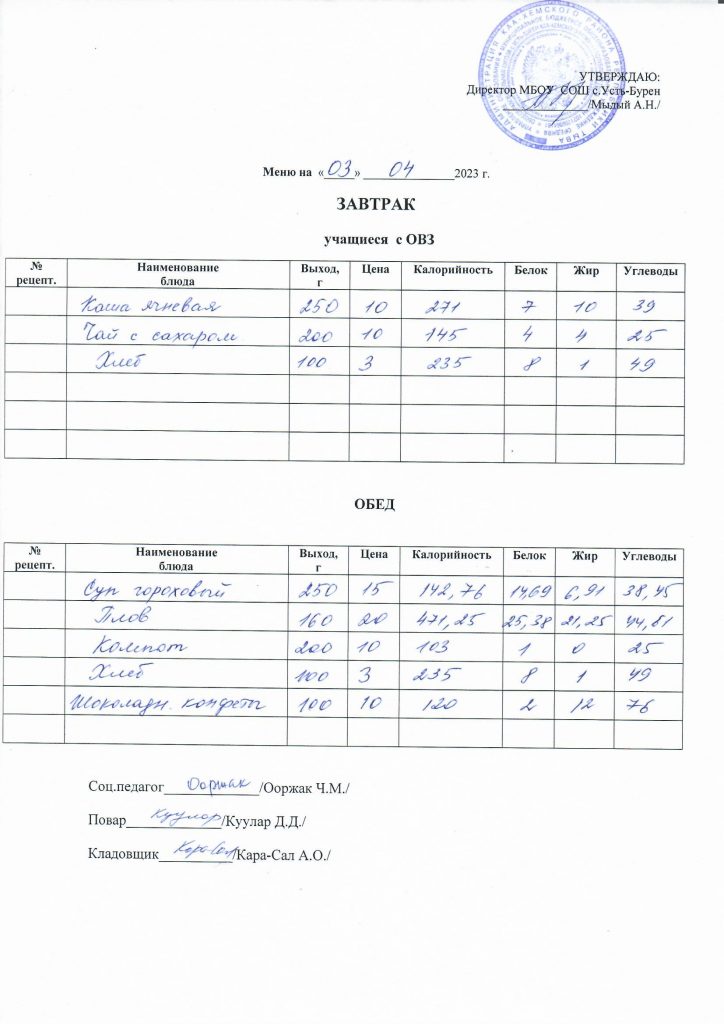 Меню на 03 октября 2022 г